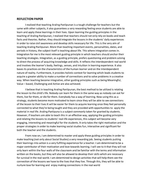 Magandang araw mga ka-blog! Sa ating pagtatapos, nais kong ibahagi sa inyo ang aking mga saloobin ukol sa halimbawa ng reflection paper na ating pinag-usapan. Sa paglipas ng panahon, laging may mga bagay na nagpapabago sa ating buhay at nagbibigay daan sa paglago ng ating pagkatao. Ang pagsusulat ng reflection paper ay isa sa mga paraan upang maipahayag natin ang ating mga karanasan at mga natutunan mula sa mga ito.